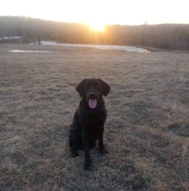 River is Miss Dependable. She just goes out and does her work, never flashy, never performs poorly. Quiet and calm at the line, but loves her work. She recently finished her Junior Hunter title. She also has a great off switch around the house